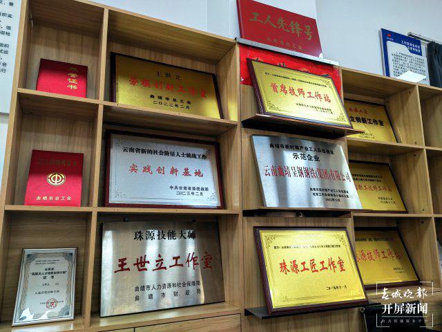 走进曲靖呈钢钢铁(集团)有限公司“王世立劳模(职工)创新工作室”,映入记者眼帘的是满墙的荣誉及各种创新发明专利,还有许多电器设备、零件。这里就是王世立的第二个“战场”。今年46岁的王世立,每天早早来到工作岗位,除了奔走在炼钢各车间电路点“排忧解难”外,很多时候就一个人或带着徒弟们在工作室努力钻研,传授排障技能。