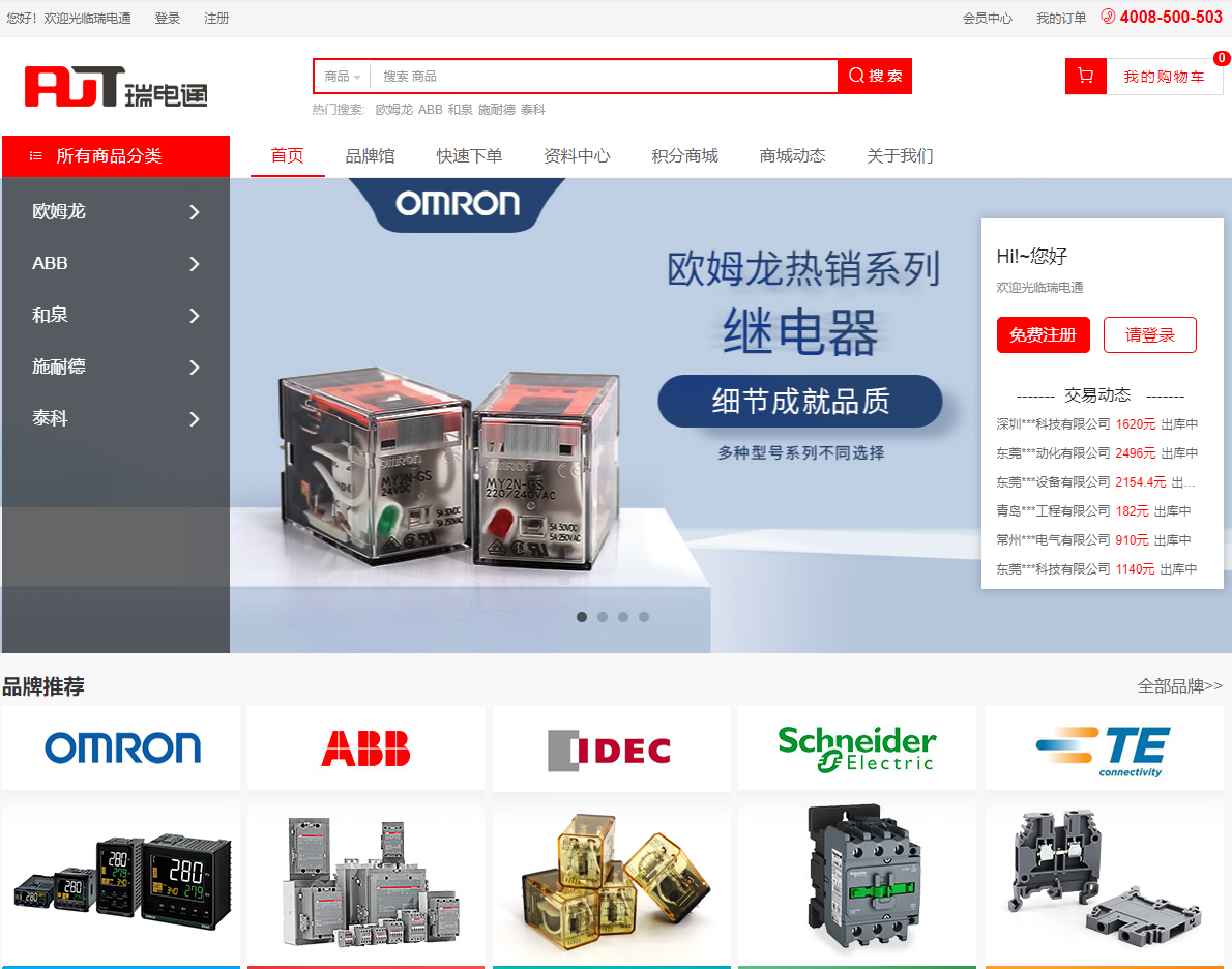20 瑞电通 https://www.rdtmall.com/ 2019年成立,定位于工业自动化领域。特点是线上线下结合,立足于线下多年累积的行业销售经验,提供更多优质的产品及品牌选择,结合全国各地的销售网点,让线上线下渠道相互联通,开创“实体+互联网”的经营模式,专注于ABB、OMRON(欧姆龙)、IDEC(和泉)等全球一线工控品牌。