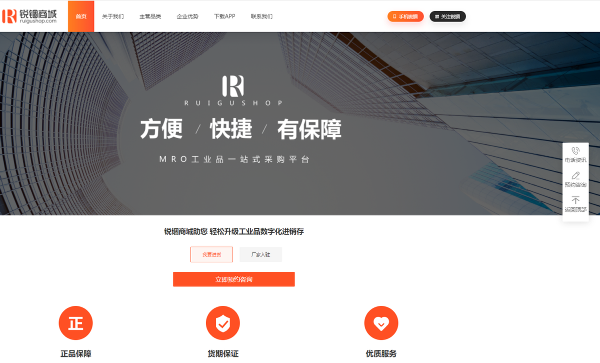 12 锐锢商城https://www.ruigushop.com/ 锐锢商城是上海鑫谊麟禾科技有限公司旗下品牌,是一家专注于MRO产业互联网的B2B自营电商平台。锐锢商城服务于中国MRO工业品生产企业和从事MRO工业品流通的广大中小型企业。