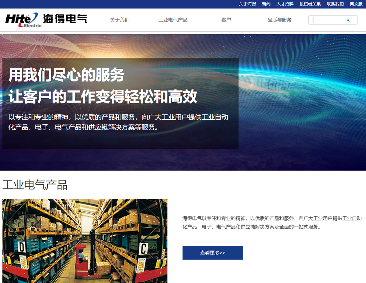 15海得电气科技有限公司成立于2007年,由法国索能达(SONEPAR)集团和上海海得控制系统股份 有限公司(证券代码:002184)合资成立,海得电气销售:施耐德、欧姆龙、西门子、ABB 等品牌的断路器、接触器、变频器、继电器、开关按钮、指示灯、传感器、PLC、触摸屏等配电、电子元器件及工业自动化产品。