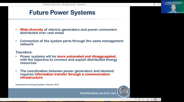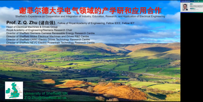 意大利米兰理工大学教授、西安交大-米兰理工联合设计与创新学院执行副院长Sergio Pignari教授作题为“新型电力系统中有意和无意电磁干扰”的学术报告,借助具体模型和典型项目生动地介绍了有意电磁干扰与无意电磁干扰相关知识。他还介绍了西安交大-米兰理工联合设计与创新学院在产学研用方面开展的相关合作。英国皇家工程院院士诸自强教授以“谢菲尔德大学电气领域的产学研和应用合作”为题,从概念提出到商业应用全方位展示了其科研团队在电动汽车方面产学研用成果。英国埃克塞特大学副校长王忠东教授作题为“电力系统网络数字化与电力变压器数字孪生”的报告,介绍了埃克塞特大学能源研究与智能电网中心,并以电力变压器为例展示了电力系统网络数字化趋势。