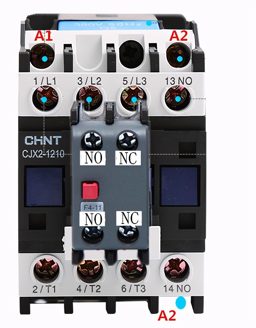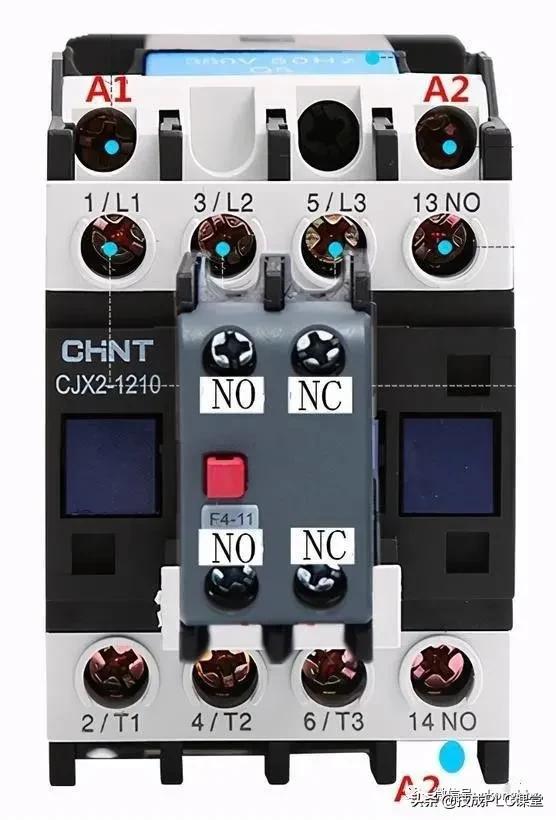 很多电气元件上都有这两个标注,NO对应常开触点,NC对应常闭触点。比如:中间继电器、交流接触器、时间继电器、接近开关、光电开关以及变频器和PLC等,电气自动化控制电路其实就是若干个NO和NC组成的混合电路。