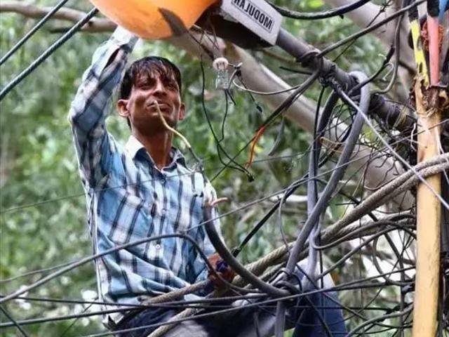 那就是印度电工,电工这个工作想必对很多人来说都是很常见的,,而就是因为各个国家的,发展状况不一样,所以在我们中国队发现有很多必备高端设备的和一些防电的绝缘体!而小编发现,印度电工是一个非常厉害的职业,因为它与我们中国不一样,因为具备胆识!因为大家在图片就可以看到,这些可以说冒着危险的印度监工正在专注着修理电线!