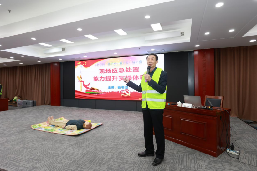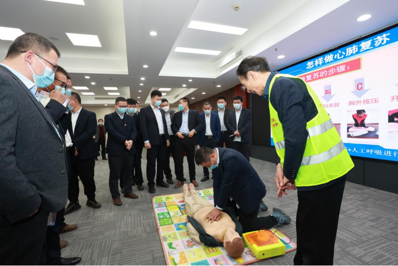 为活跃现场氛围,培训授课告别过去单一讲课的形式,授课同时穿插进行了现场体验,安全专家们讲完基础性内容后邀请职工上台体验日常常见的应急处置情况,在场60余位职工体验心肺复苏、消防、包扎、气道梗阻等项目后纷纷表示学到很多知识。