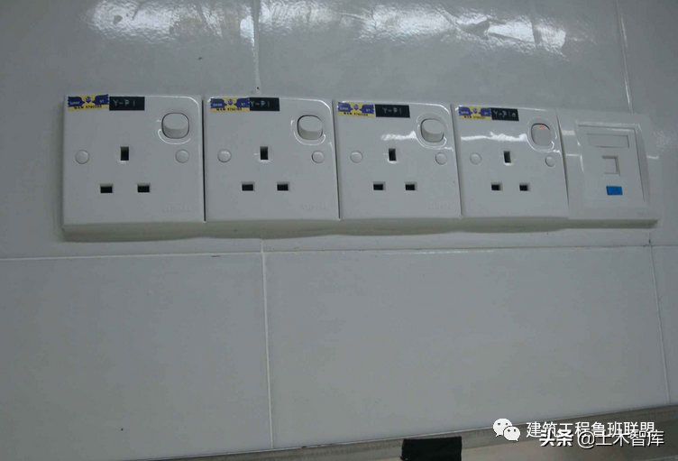 当接插有触电危险家用电器的电源时,采用能断开电源的带开关插座,开关断开相线;潮湿场所采用密封型并带保护地线触头的保护型插座,安装高度不低于1.5m。当不采用安全型插座时,托儿所、幼儿园及小学等儿童活动场所安装高度不小于1.8m;车间及试(实)验室的插座安装高度距地面不小于0.3m;特殊场所暗装的插座不小于0.15m;同一室内插座安装高度一致;暗装的插座面板紧贴墙面,四周无缝隙,安装牢固,表面光滑整洁、无碎裂、划伤,装饰帽齐全。地插座面板与地面齐平或紧贴地面,盖板固定牢固,密封良好。