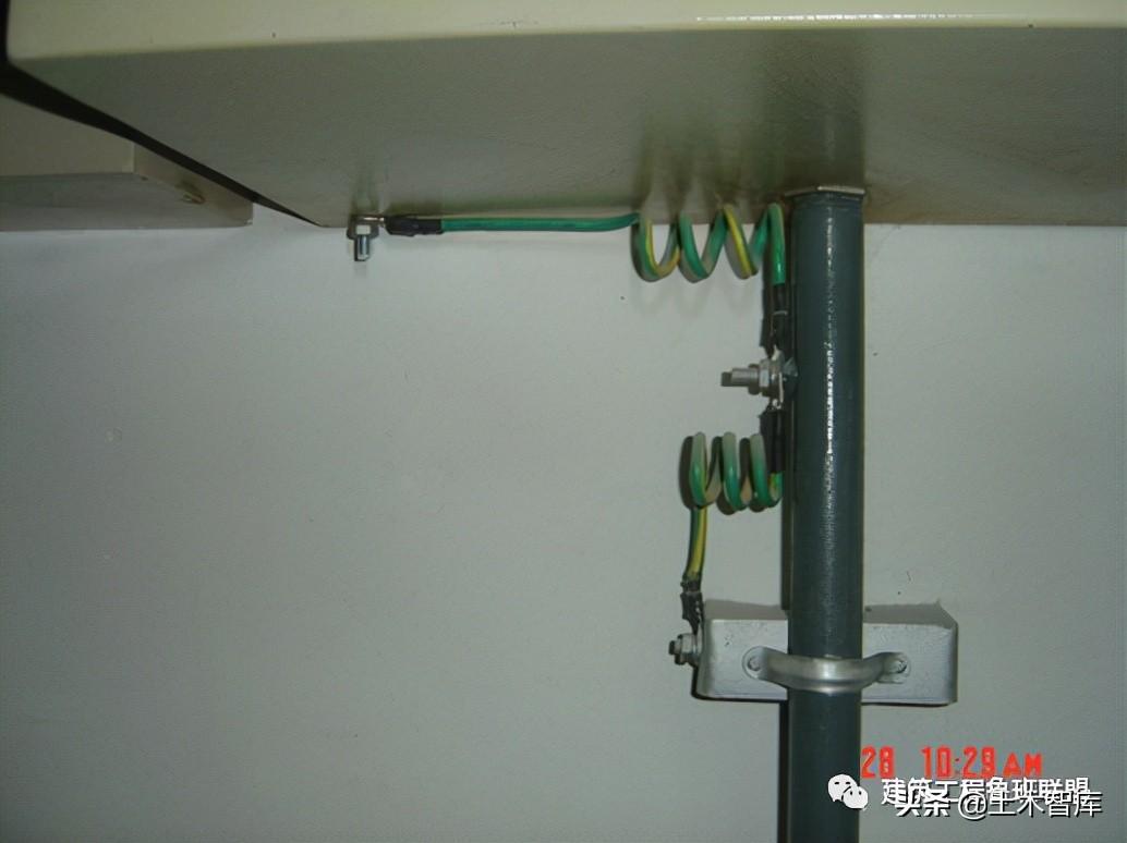屋面金属管道必须接地可靠,不得直接焊接,必须采用接地卡环并采用铜芯软线与接地扁钢连接,且防松零件齐全。