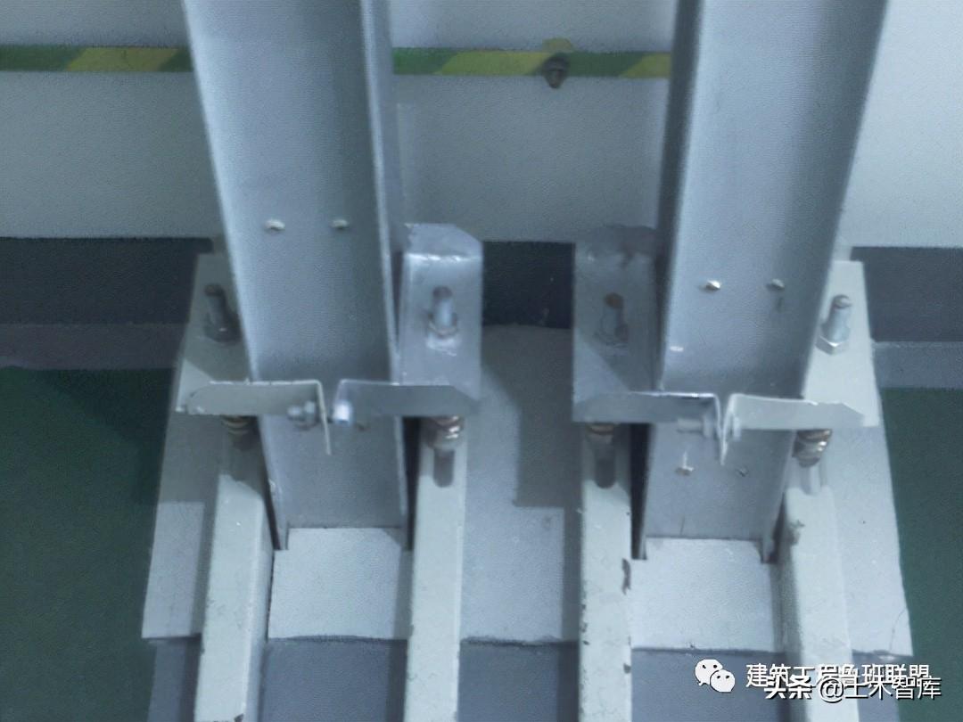 桥架在进出接线盒、箱、柜、转角、转弯和变形缝两端及丁字接头的三通500mm以内应设置固定点。800及以上桥架的水平弯头中心应加支架。支架与吊架距离上层楼板不应小于150-200mm,距梁底15-20mm;距地面高度不应低于100-150mm。所有三通、水平弯头处的支架应为固定支架。当铝合金桥架与钢支架固定时,在桥架与支架间加3mm厚橡胶垫,并在支架上敷通长接地母线桥架与支架间螺栓、桥架连接板螺栓固定紧固无遗漏,螺母位于桥架外侧。