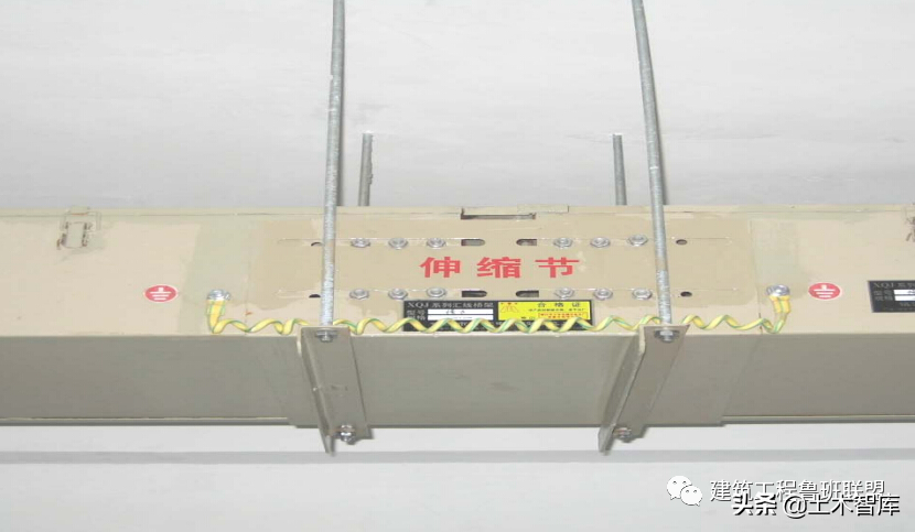 直线段钢制电缆桥架长度超过30m、铝合金或玻璃钢制电缆桥架长度超过15m应用伸缩连接板连接;桥架经过建筑物的变形缝(伸缩缝、沉降缝)时,桥架本身应断开,留50mm宽的缝隙,桥架俩侧设置“伸缩连接板”(其螺栓固定孔为长条状),并与桥架侧边的连接螺栓在安装时不要拧紧以适应托盘梯架纵向伸缩;并用截面积不小于16mm2的跨接线做接地连接。