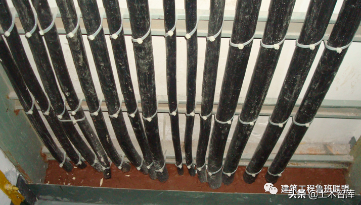 母线槽水平安装时,过墙处留洞应比母线槽的宽和高大50mm,穿楼板处洞每边比母线槽的尺寸大100mm。母线槽穿楼板洞处用50mm的面砖施工做挡水线,背面距桥架、母线槽20-30mm,桥架和母线槽周边嵌防火泥。层高在4.5m以内时,垂直安装的母线槽应在每层楼板上安装1套弹簧减振支架,插接箱顶300mm装1个支架;层高超过4.5m的,应增加一个支架,母线的接头不得位于楼板内。