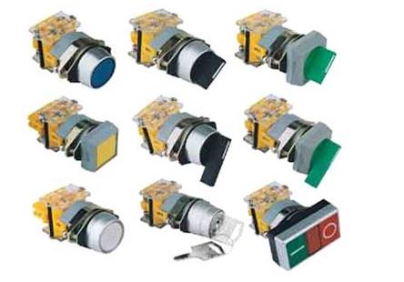按钮开关的种类很多,常见的有档位开关,带指示灯的开关,自复位开关,急停开关等等。这些开关底部都是有两组开关,一组常开一组常闭,按需要接线即可。行程开关的原理也一样,接法类似。