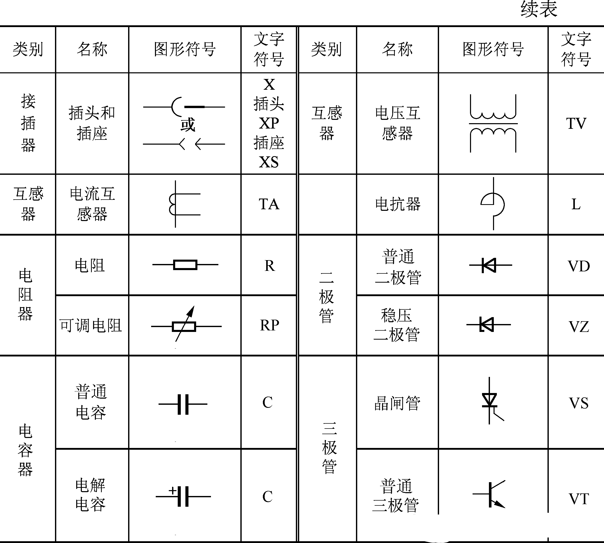 1、QS:刀开关。2、FU:熔断器。3、KM:接触器。4、KA:中间继电器。5、KI:过流(欠流)继电器。6、KT:时间继电器。7、SB:按钮。8、SQ:行程...1、QS:刀开....