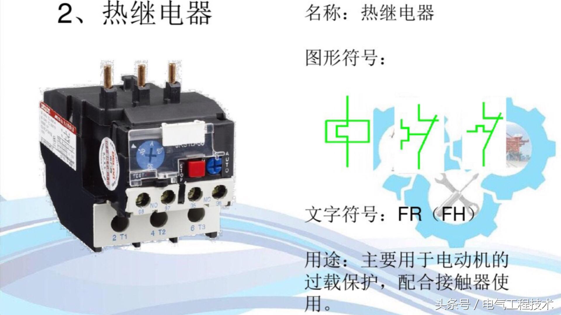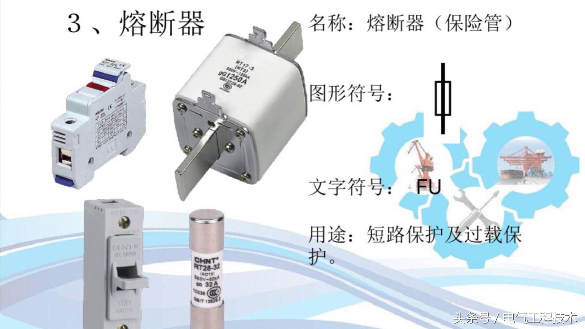 两种常见的过载保护电气元件,熔断器就是我们常说的保险丝,而热过载继电器是防止电机过载的常用电气。